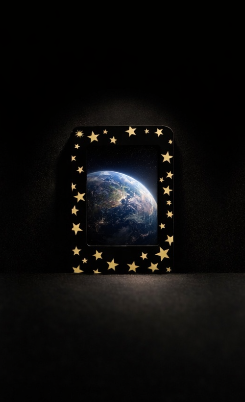 Bold and energetic — a dark frame accented with bright stars for a fun, standout presentation.